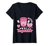 Donna Burro Insieme Tazza Cuori Amore San Valentino Divertente Amore Maglietta con Collo a V